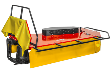Profi-Schlegelmäher, stufenlos höheneinstellbar mit hoher Flächenleistung auch bei hohem Bestand und widerspenstigem Gestrüpp mit höhenverstellbarer, innovativer Frontklappe (optional elektrisch) für ferngesteuerte Geräte.