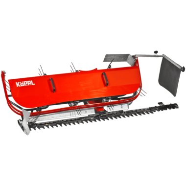 Mähapparat mit Band-Mahdenformer inkl. Spritzschutz und Stabilisator. Wahlweise mit Mittelschnitt- oder Normalschnitt-Eingrasbalken. Inklusive 1 Reservemesser
