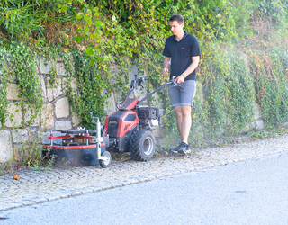 Als weiteres Gerät der KÖPPL NEW GENERATION kann der neue COMPAKT EASY vollelektrisch mit Standard-Akkusystemen oder mit zwei leistungsstarken Benzinmotoren betrieben werden.