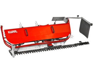 Mähapparat mit Band-Mahdenformer inkl. Spritzschutz und Stabilisator.