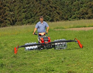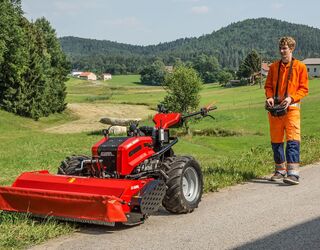 Viel Bodenfreiheit, tiefer Schwerpunkt, Motor- und Getriebegehäuse sowie die Achsen sind durch die spezielle Unterbodenkonstruktion massiv geschützt. Die Motorposition liefert ein optimales Auflagegewicht der Mähbalken für hohe Hangsicherheit.