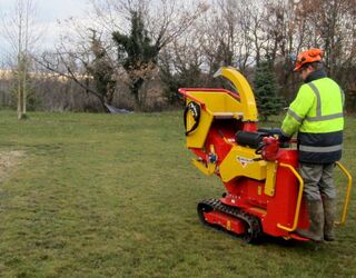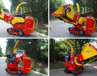 - Holzhäcksler auf Raupen. Geeignet für unebenes Gelände und Abhänge